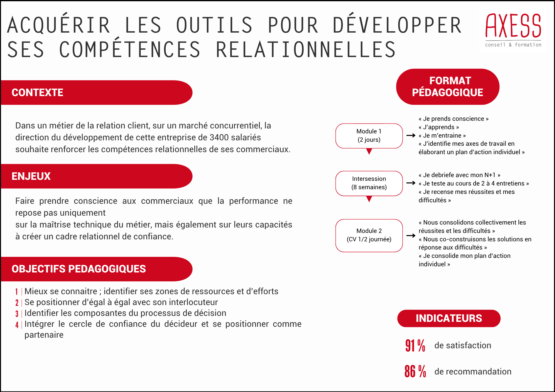 Le négociateur performant sait à la fois affirmer la valeur de son offre et préserver la qualité de la relation client pour construire dans la durée. Pour nous 80% de la réussite réside dans la préparation méthodique, les 20% relèvent de l’agilité et de la posture du négociateur au cours de l’entretien.